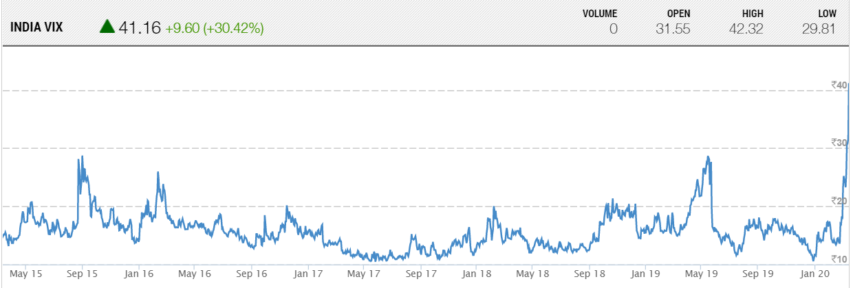 India VIX – 41.1625 as on March 12,2020. March 26 is the Expiry date. Implied Volatility is 50.17.